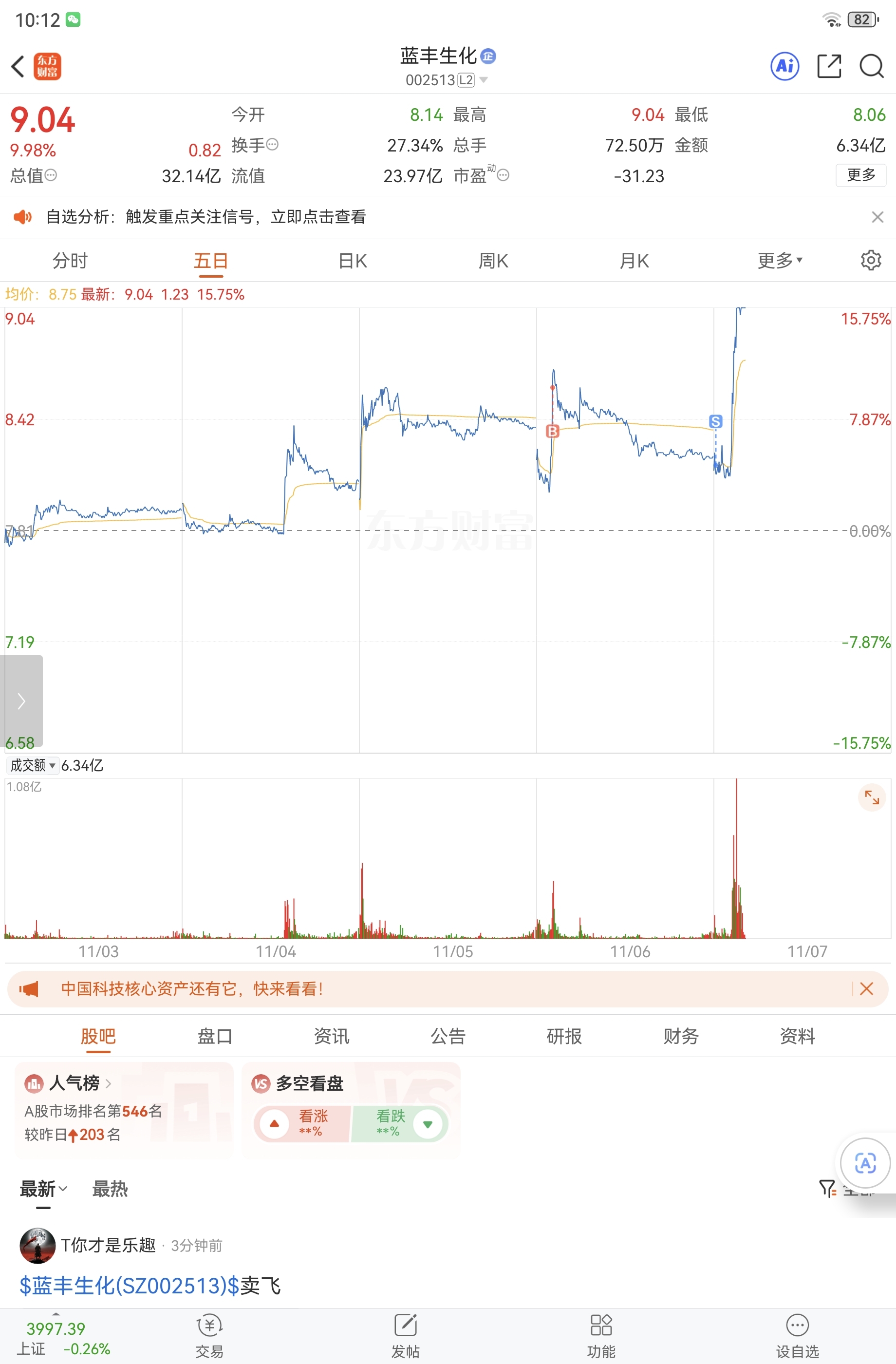$蓝丰生化(SZ002513)$ 我是韭菜王有谁不服