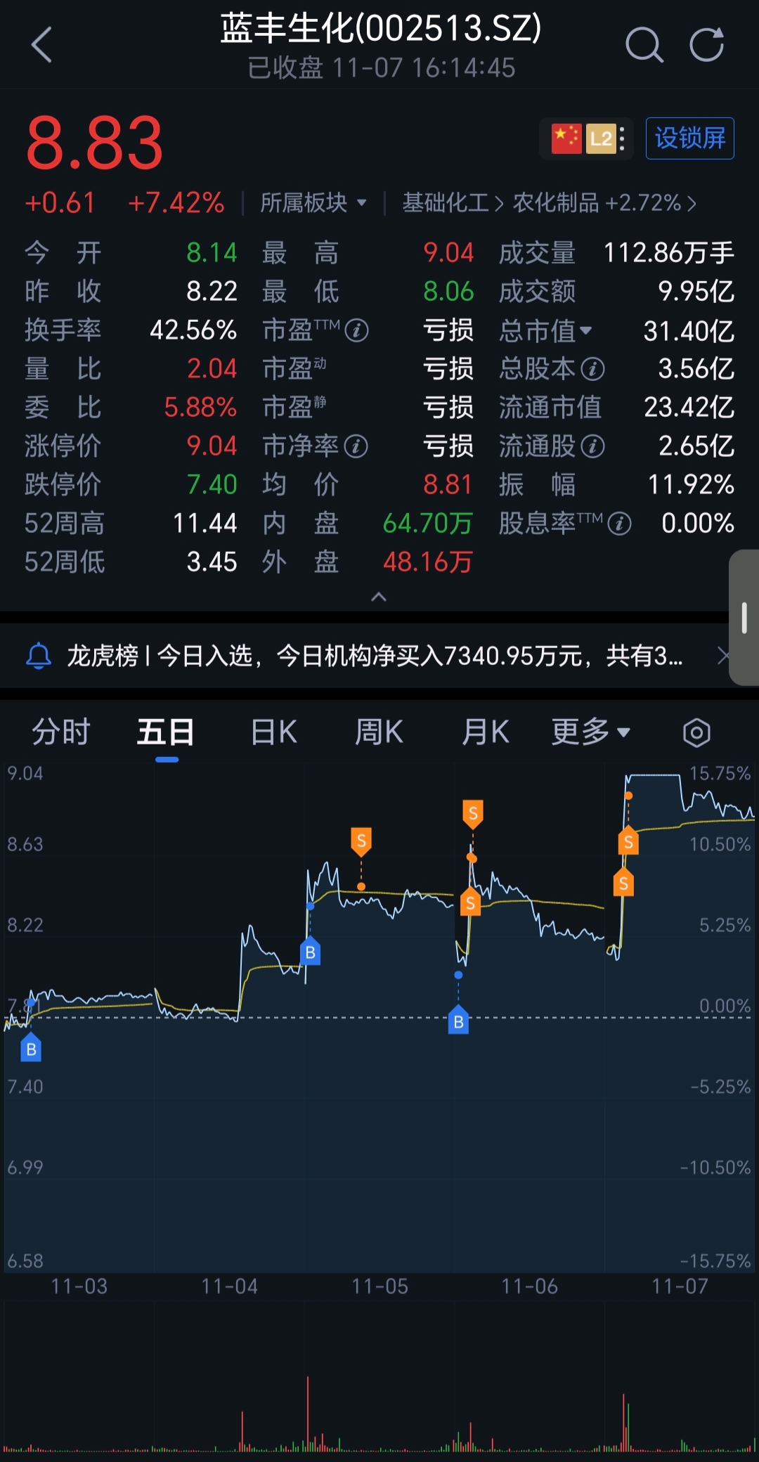 $蓝丰生化(SZ002513)$ 今天把9000股底仓分三批清掉了。祝车上的股友发财。
