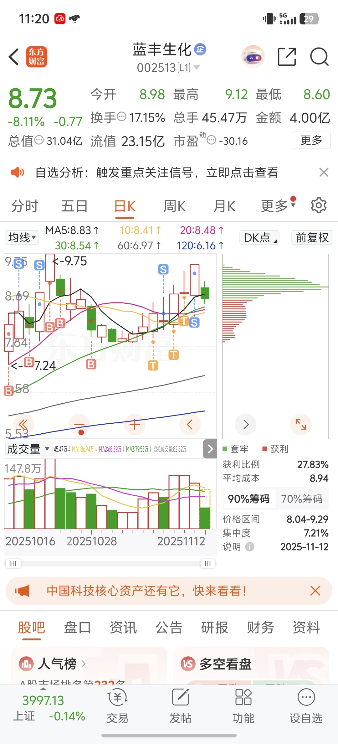 $蓝丰生化(SZ002513)$ 躲过了蓝封没躲过澄星哎