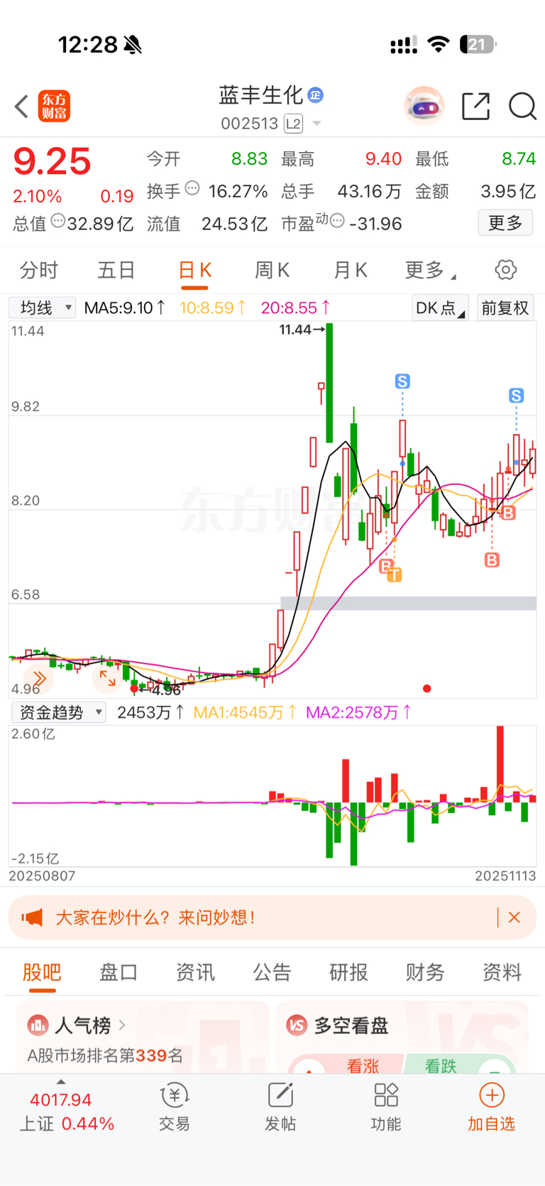 $蓝丰生化(SZ002513)$ 真是琢磨不透