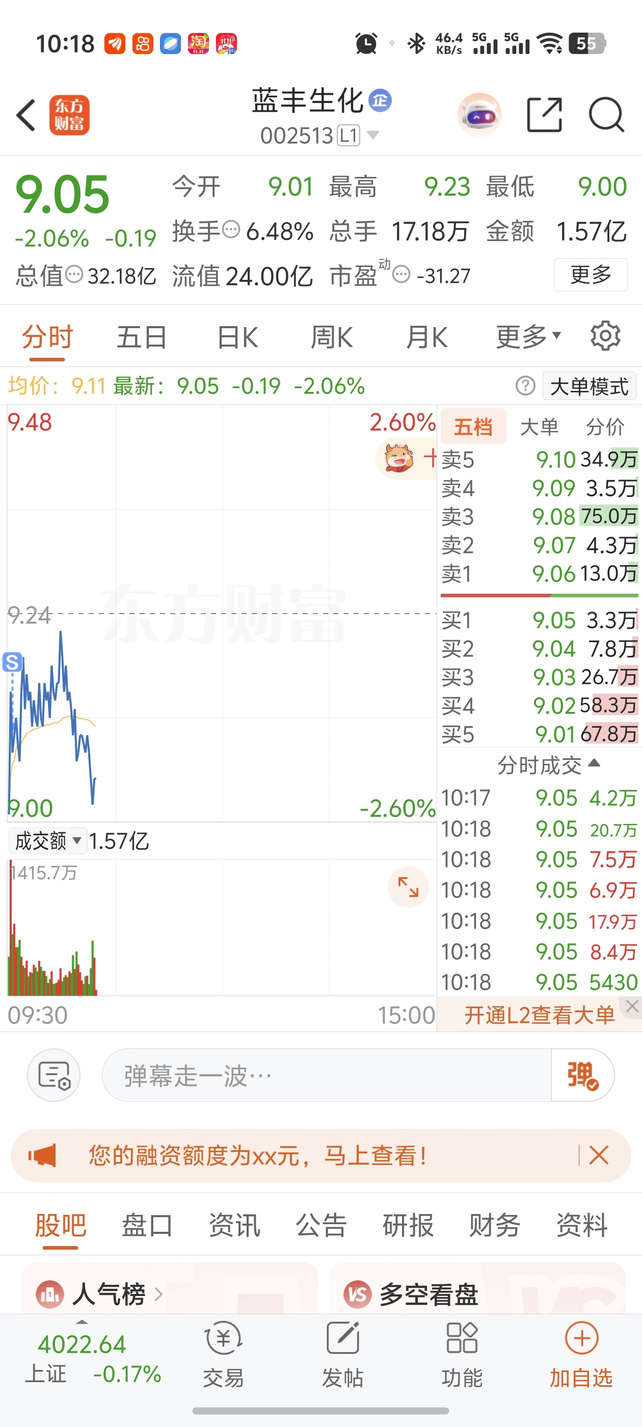 $蓝丰生化(SZ002513)$ 亏两个点走了,再见,再也不打野了,只做总龙