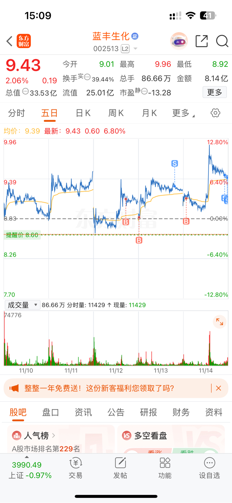 $蓝丰生化(SZ002513)$ 午觉睡过头了