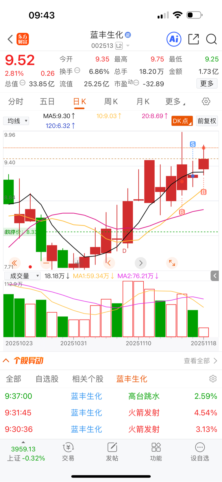 $蓝丰生化(SZ002513)$ 震荡行情,千万不要去来回换股,不然两头吃面,我一直呆蓝丰里边还赚钱,去了成飞这杂毛,一天时间亏了我4000