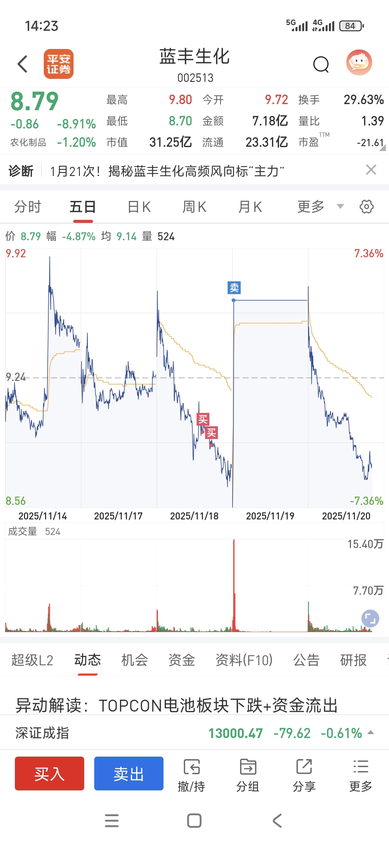 $蓝丰生化(SZ002513)$ 大哥们,我明天低开再买吧!
