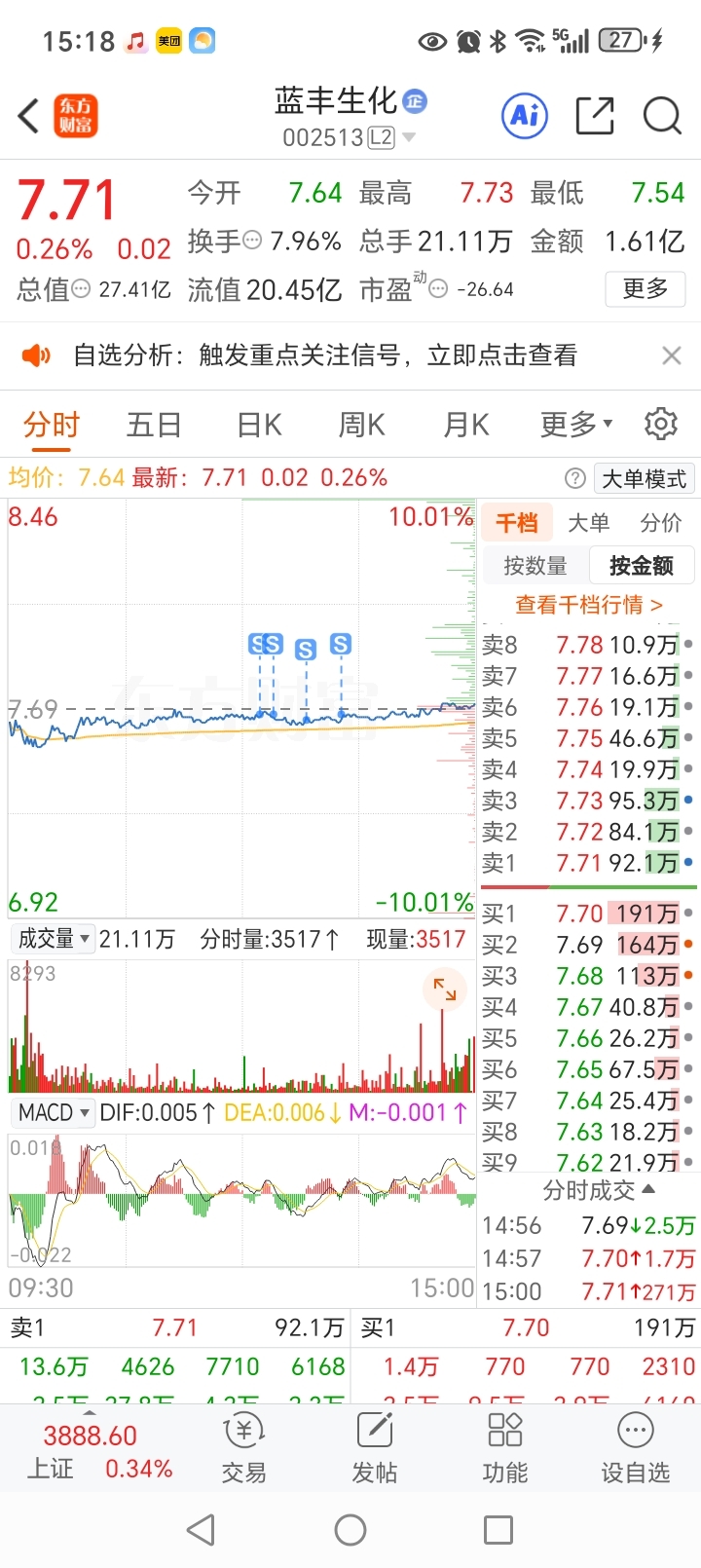 $蓝丰生化(SZ002513)$ 耗不起了,我走了主力可以拉了,对不住了兄弟们,留下的发财,我去平潭打板了,祝我成功连板吧