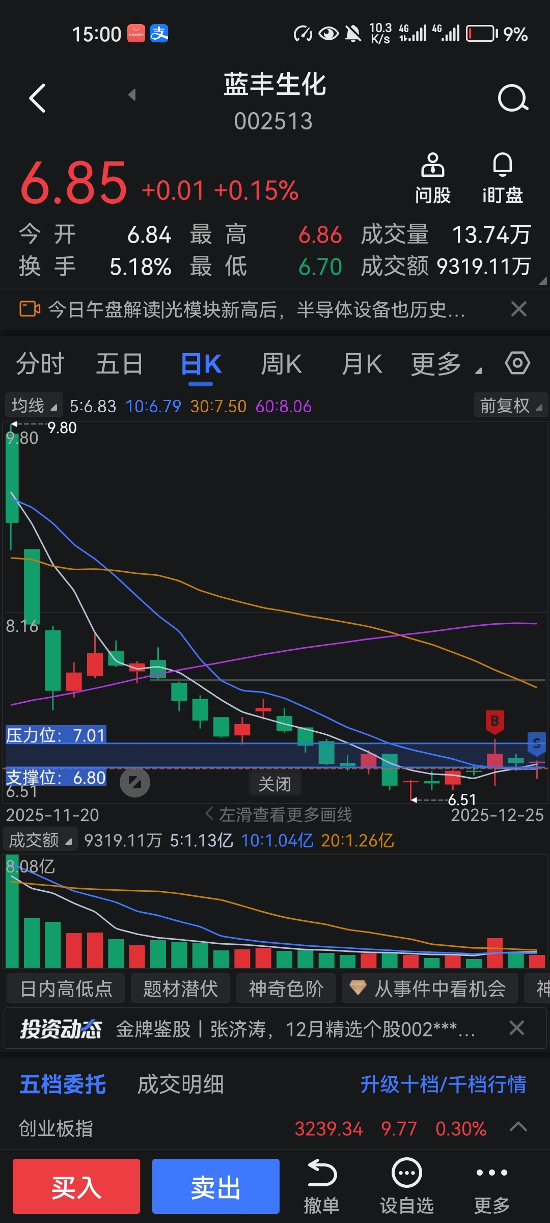 $蓝丰生化(SZ002513)$ 跑了,感觉明天会涨,但是太魔人了,搞了俩烧饼钱