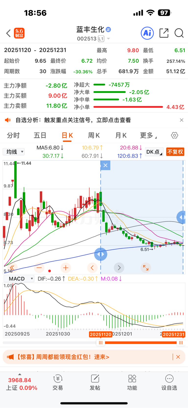 30个交易日一个多月,单边下跌趋势基本上毫无反弹有点意思