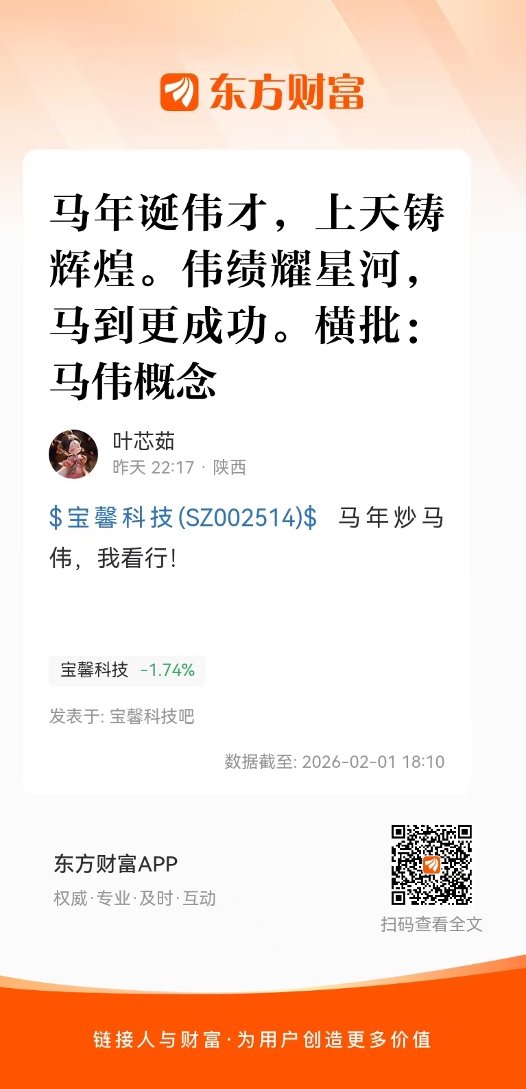 温馨提示: 1.根据《证券法》规定,禁止编造、传播虚假信息或者误导性信息,扰乱证券市场;2.用户在本社区发表的所有资料、言论等仅代表个人观点,与本网站立场无关,不对您构成任何投资建议。用户应基于自己的独立判断,自行决定证券投资并承担相应风险。《东方财富社区管理规定》