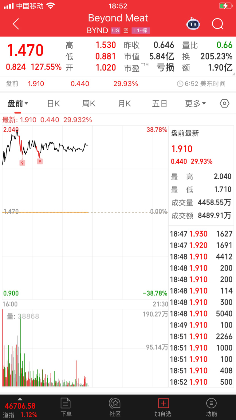 $金字火腿(SZ002515)$ 美股的人造肉股三天涨了450%