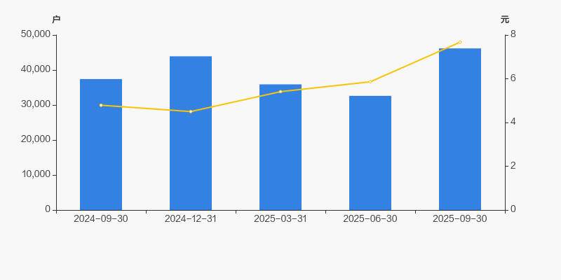2024年9月30日至今,公司股东户数显著增长,区间涨幅为23.41%。2024年9月30日至2025年9月30日区间股价上涨60.05%。