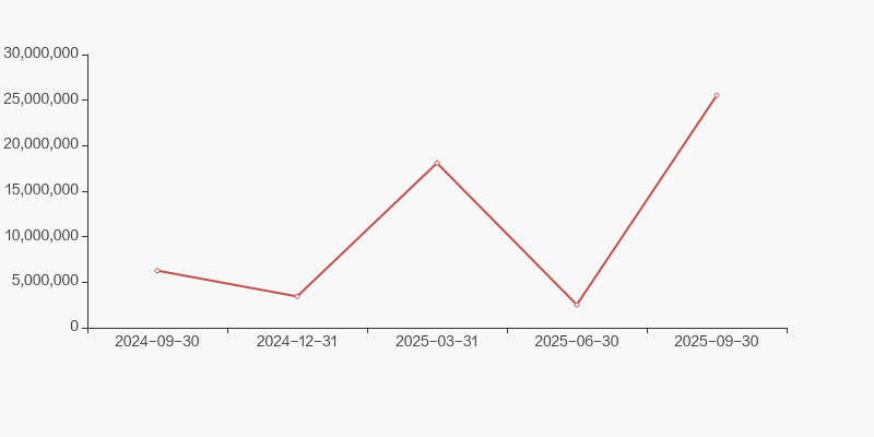 截至2025年9月30日,公司最新流通股本为12.11亿股。户均持有流通股数量由上期的3.71万股下降至2.62万股,户均流通市值20.11万元。