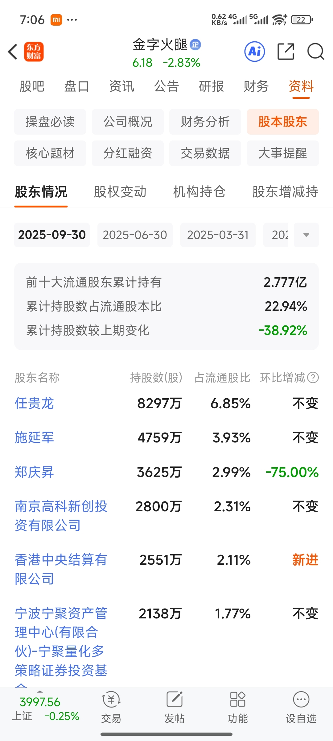 $金字火腿(SZ002515)$ 你们觉得这十大流通股里面谁在砸盘呀,问题他们的持股都好少