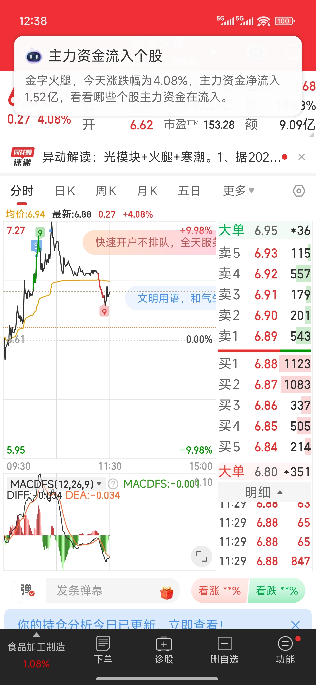 老铁们!!!昨天低吸介入的金字火腿分批了结!!!
