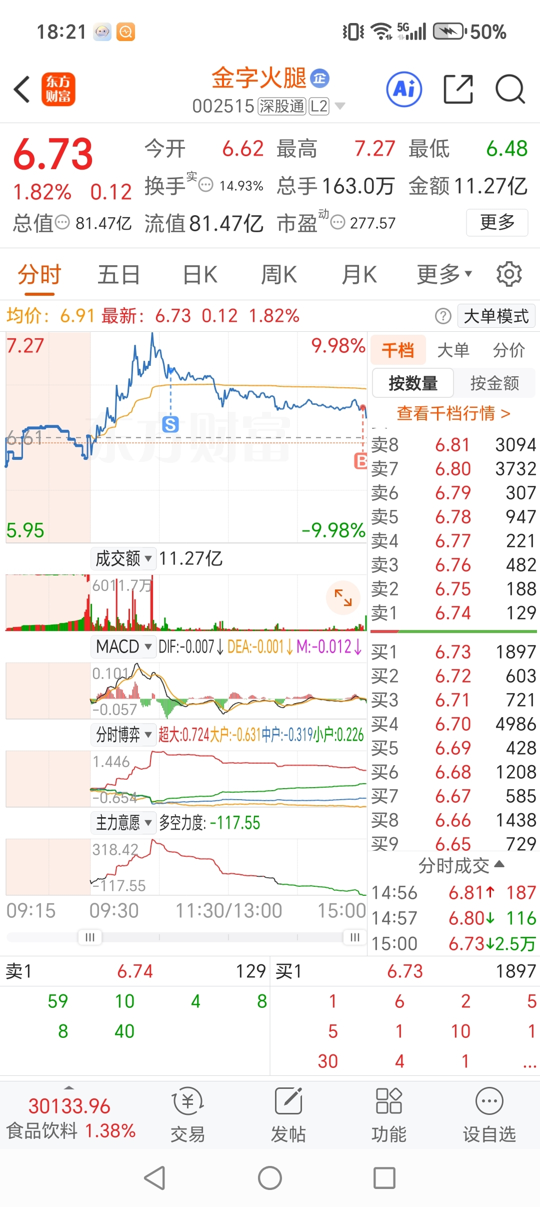 $金字火腿(SZ002515)$ 服了,集合竞价都压一个点