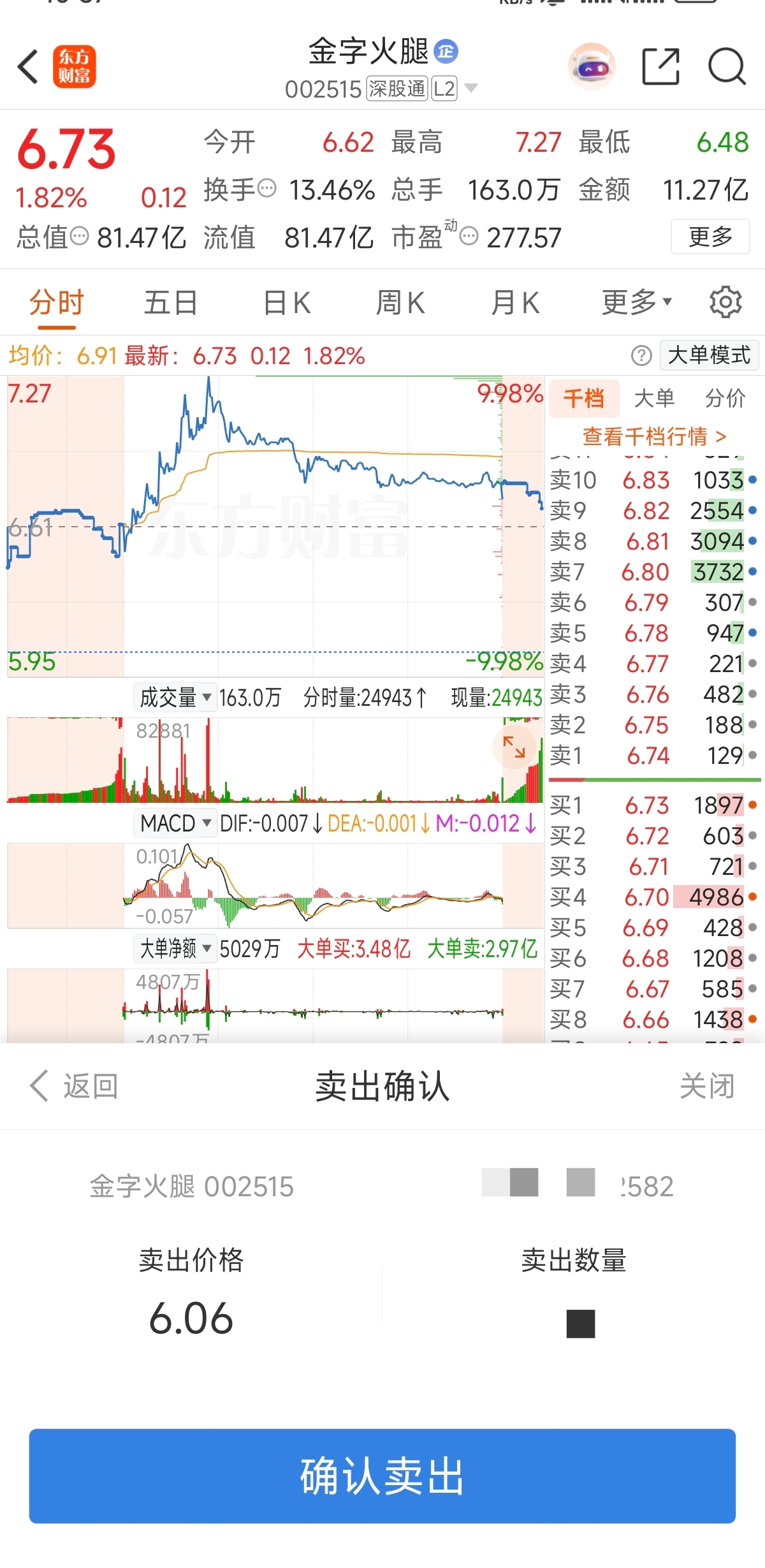 $金字火腿(SZ002515)$ 已挂单,求主力放过