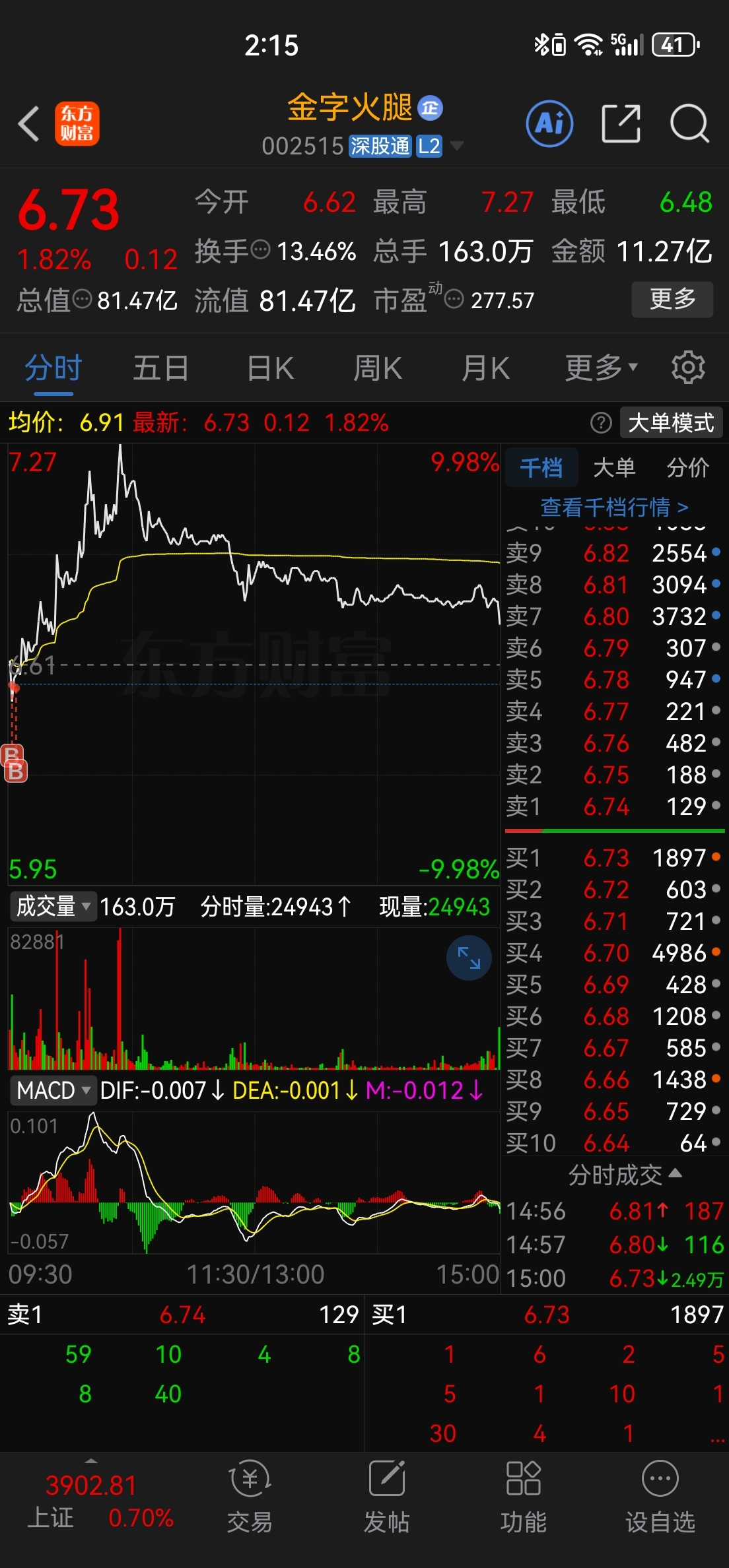 不唱多不唱空,没必要恐慌,恐慌啥呢,只是摸了一下板回落,如果是封板被爆头了才是应