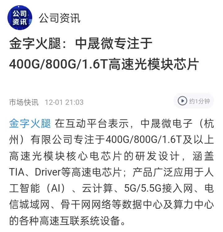 1.6 T光模块叠加年底猪肉消费,浙江小盘金字火腿重点关注,可能要妖
