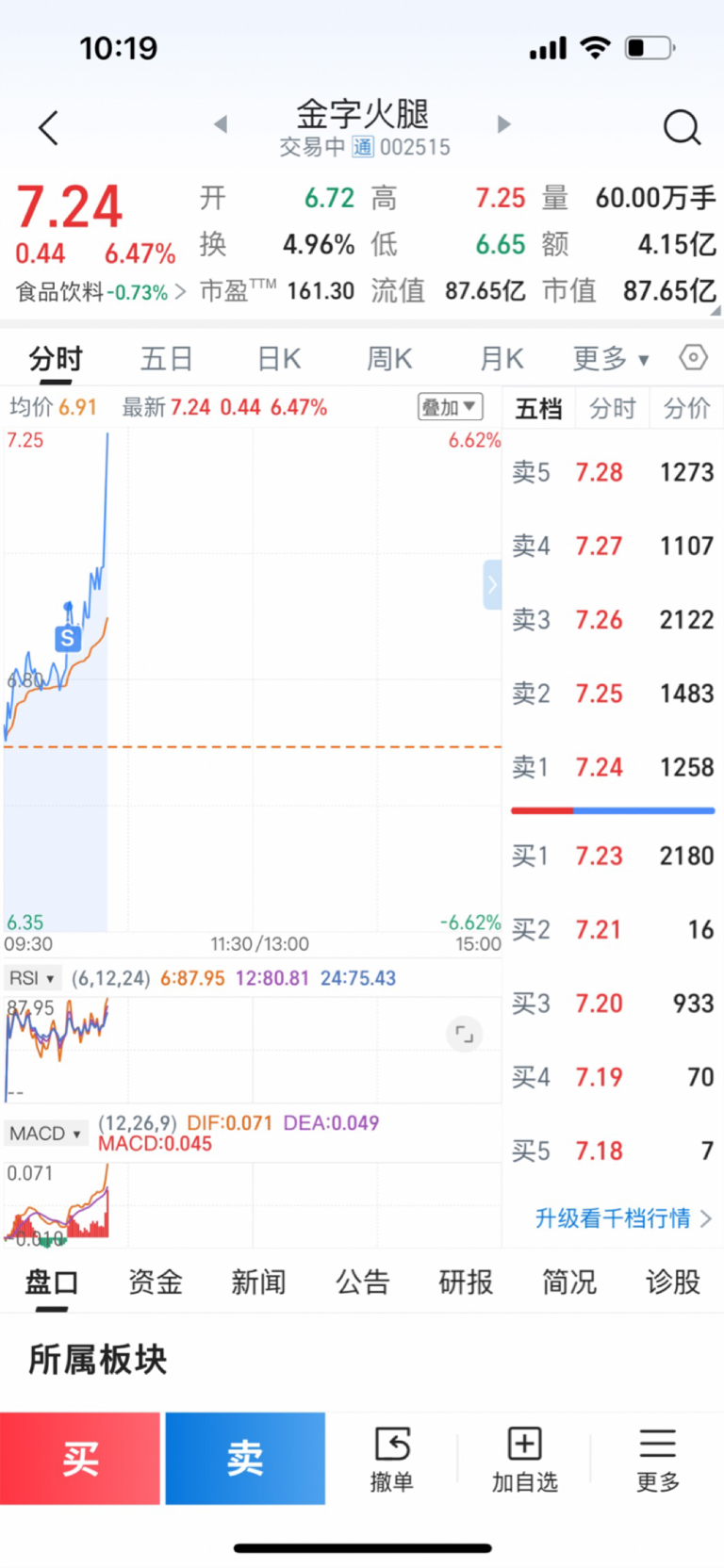 $金字火腿(SZ002515)$ 昨天卖飞榕基进你,今天又卖飞你