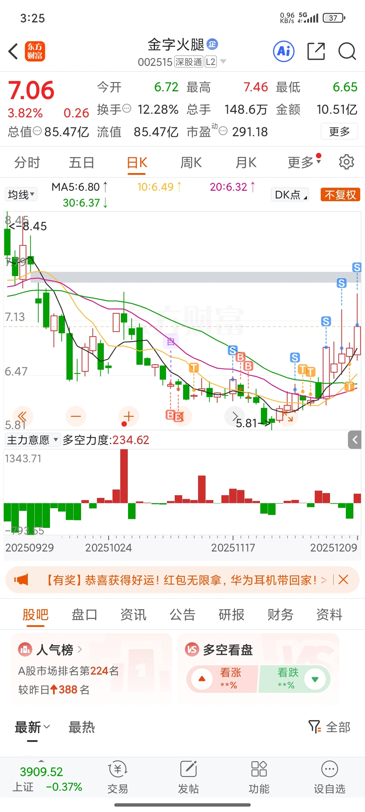 $金字火腿(SZ002515)$ 尾盘清了,感谢
