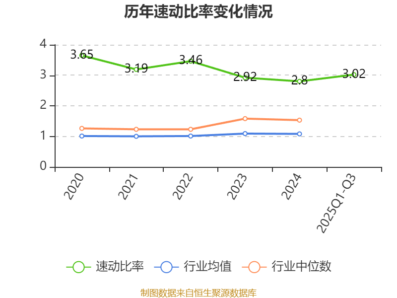2025年前三季度,公司流动比率为3.46,速动比率为3.02。