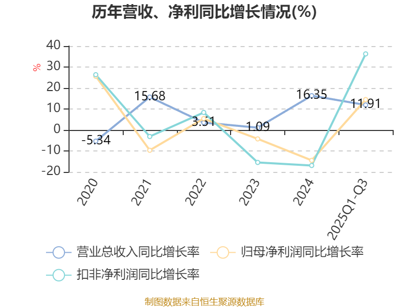 资产重大变化方面,截至2025年三季度末,公司货币资金较上年末增加64.28%,占公司总资产比重上升4.4个百分点;应收票据及应收账款较上年末减少11.71%,占公司总资产比重下降2.72个百分点;应收款项融资较上年末增加29.59%,占公司总资产比重上升1.26个百分点;固定资产较上年末减少3.18%,占公司总资产比重下降0.77个百分点。