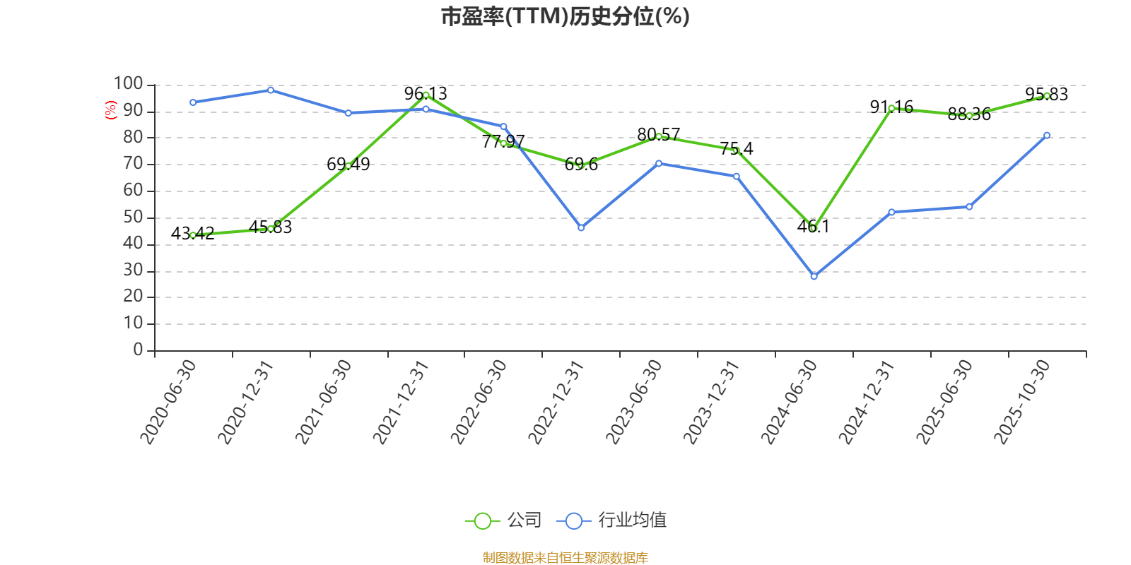 市盈率、市净率为负时,不显示当期分位数,会导致折线图中断。
