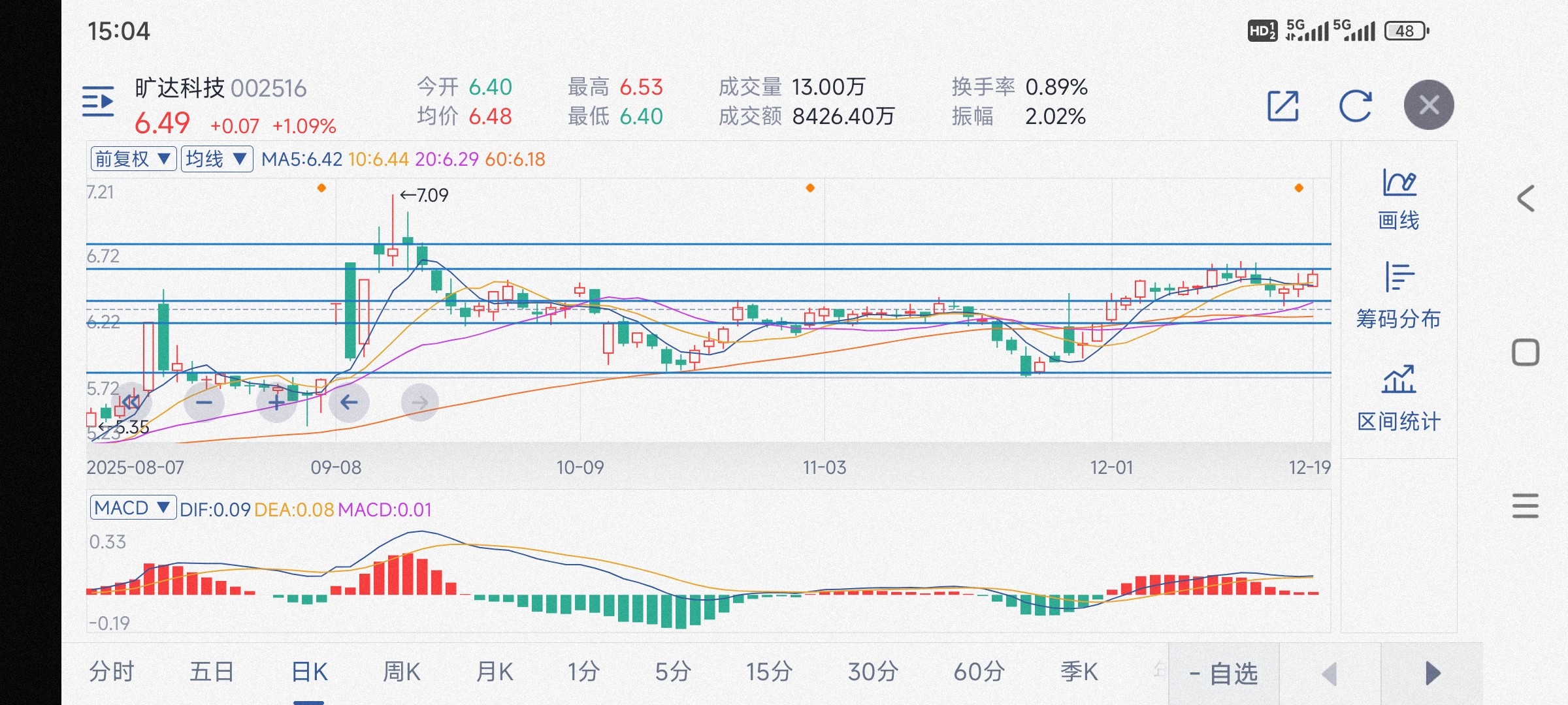 $旷达科技(SZ002516)$ 星期一高开过6.53的话就有望去挑战一下6.71的高点。上轨突破成功的话就进入主升浪了。