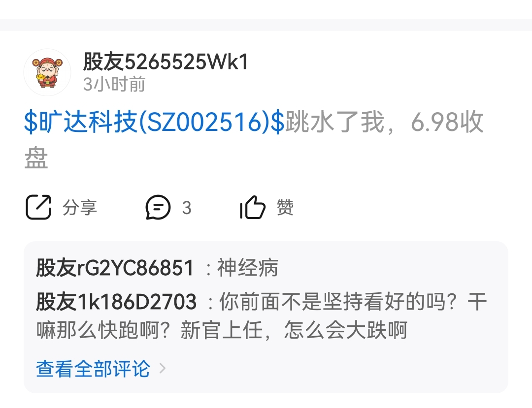 $旷达科技(SZ002516)$ 这只小丑 哭空了好几天,今天估计真的哭了