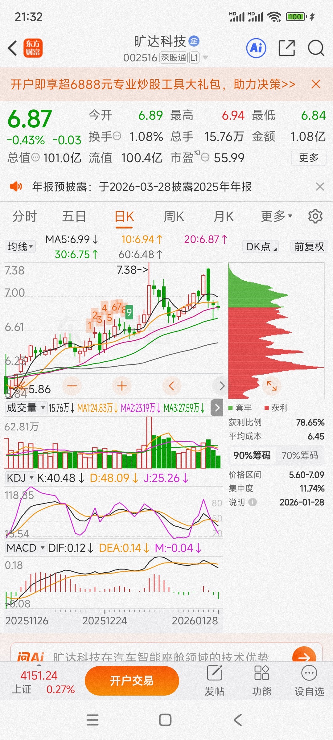 缩量下跌,5日线向下拐头,kdj开口向下,macd绿柱变长,目前来看不适合持仓,