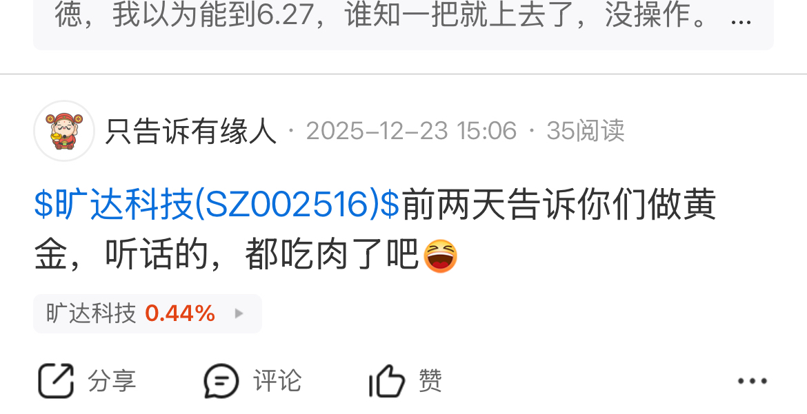 $旷达科技(SZ002516)$ 黄金吃的我都反胃了