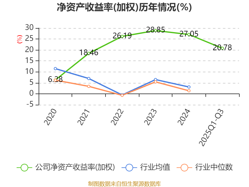 盈利能力方面, 2025年前三季度公司加权平均净资产收益率为20.78%,同比下降1.16个百分点。公司2025年前三季度投入资本回报率为18.27%,较上年同期下降3.51个百分点。