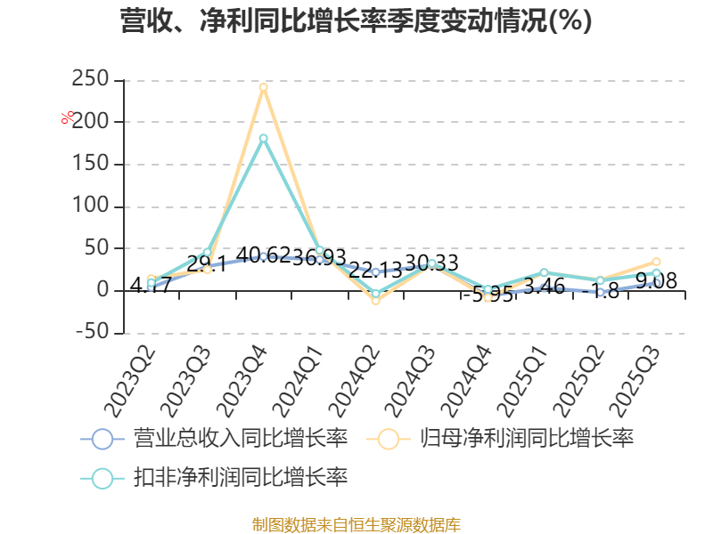 负债重大变化方面,截至2025年三季度末,公司递延所得税负债较上年末增加3097.76%,占公司总资产比重上升5.9个百分点;其他应付款(含利息和股利)较上年末增加3.84%,占公司总资产比重下降2.57个百分点;应付票据及应付账款较上年末增加114.28%,占公司总资产比重上升1.72个百分点;应付职工薪酬较上年末减少65.36%,占公司总资产比重下降0.9个百分点。