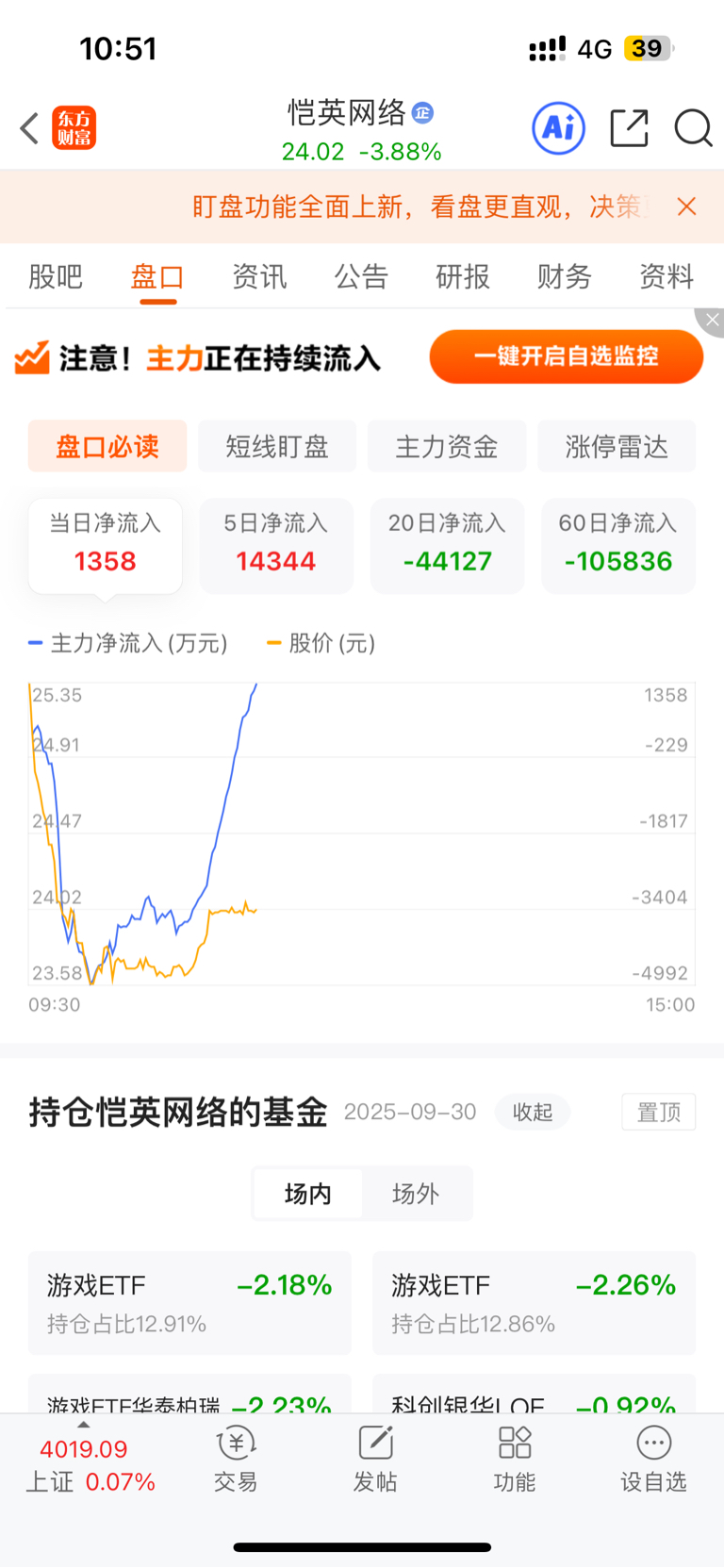 $恺英网络(SZ002517)$ 怎么做到资金流入股价不涨的