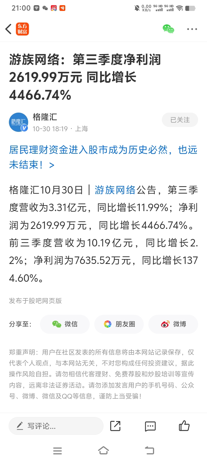 $恺英网络(SZ002517)$ 今晚游族网络业绩增长4475%, 游戏股的业绩真的很赚钱,就是主力太恶,把散户割的休毛无剩。