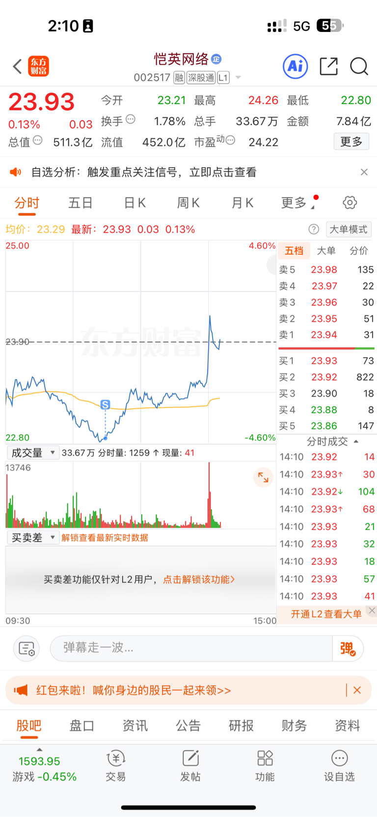 $恺英网络(SZ002517)$ 算你狠啊!那我再接回来