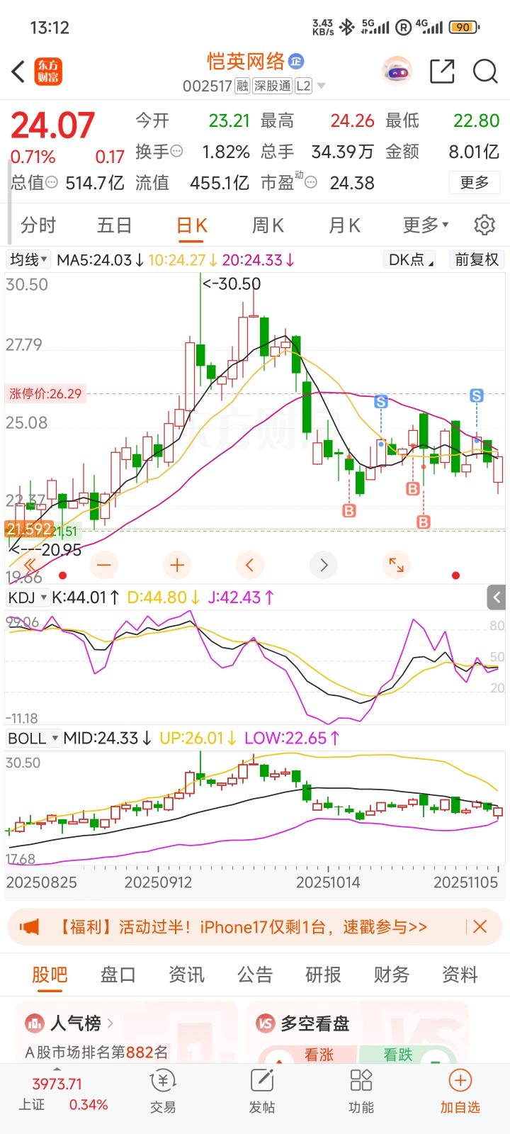 $恺英网络(SZ002517)$ 真累,好多次机会都没跑。