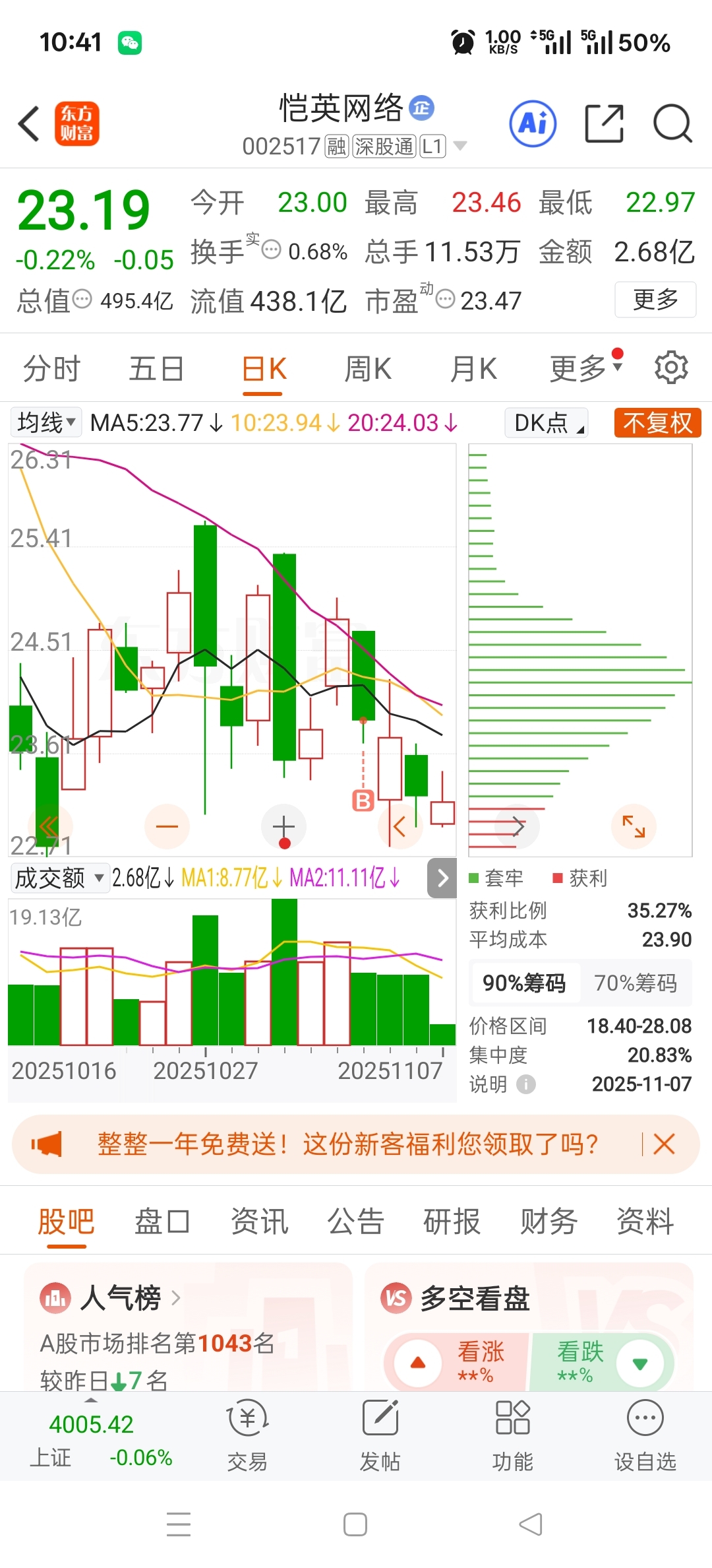 $恺英网络(SZ002517)$ 我以为我买的是低点