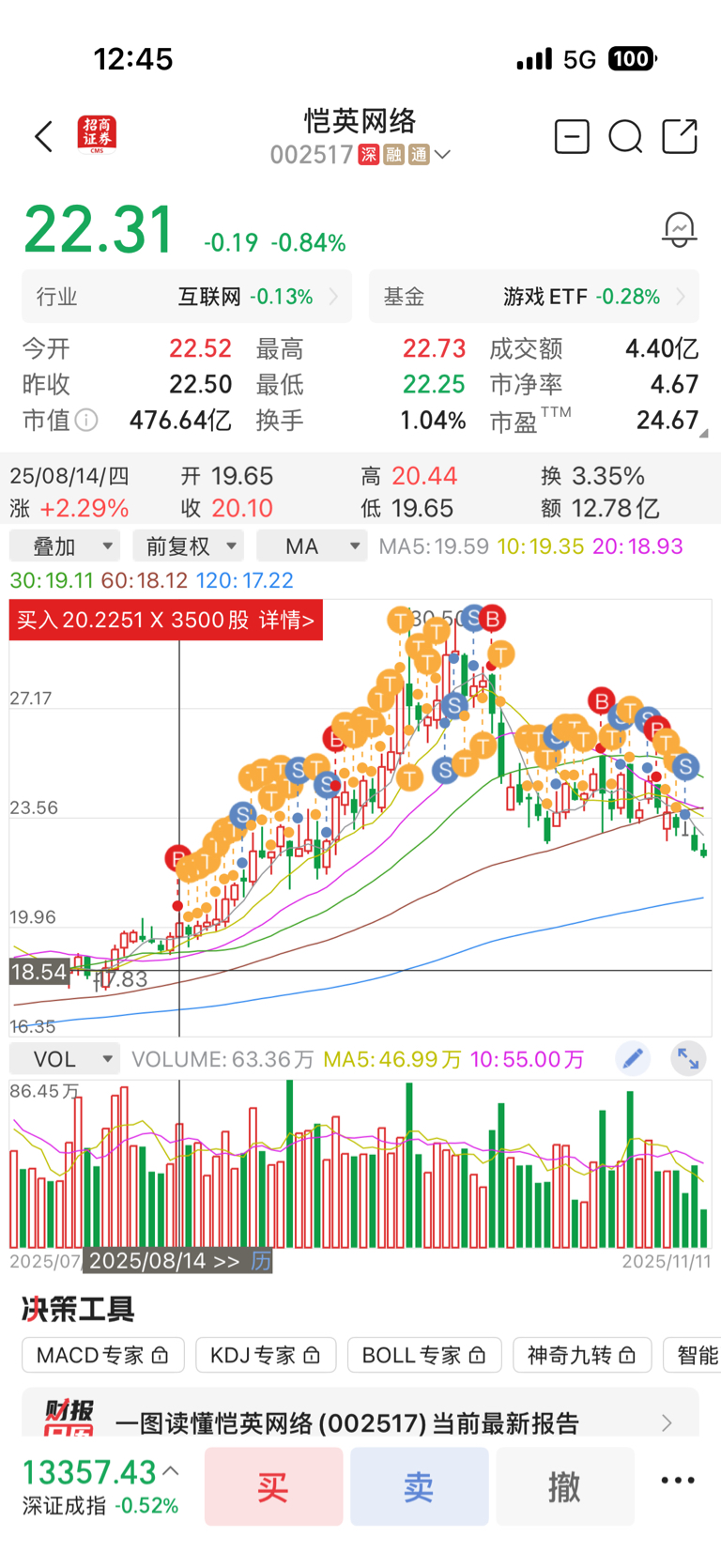 $恺英网络(SZ002517)$ 快到我当时建仓买入的价格了
