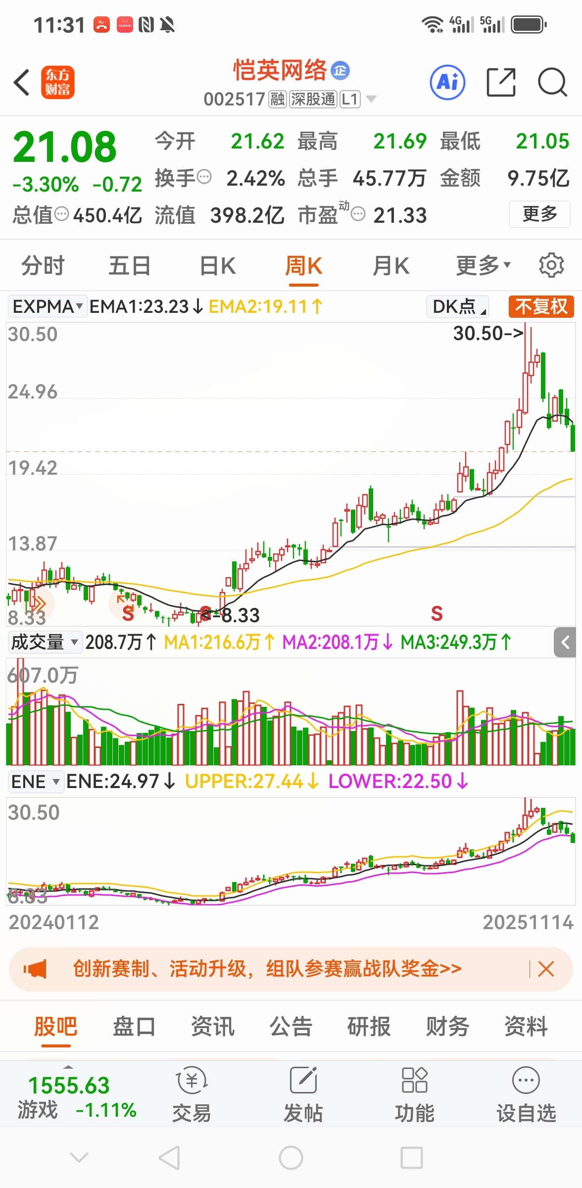 $恺英网络(SZ002517)$ 投资之道,从来不是一帆风顺的航行。