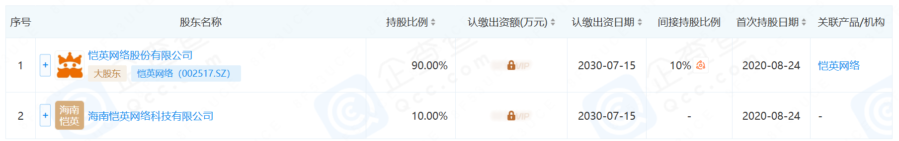 (图1为杭州极逸股权结构,图2为恺英网络科技股权结构,来源:企查查)