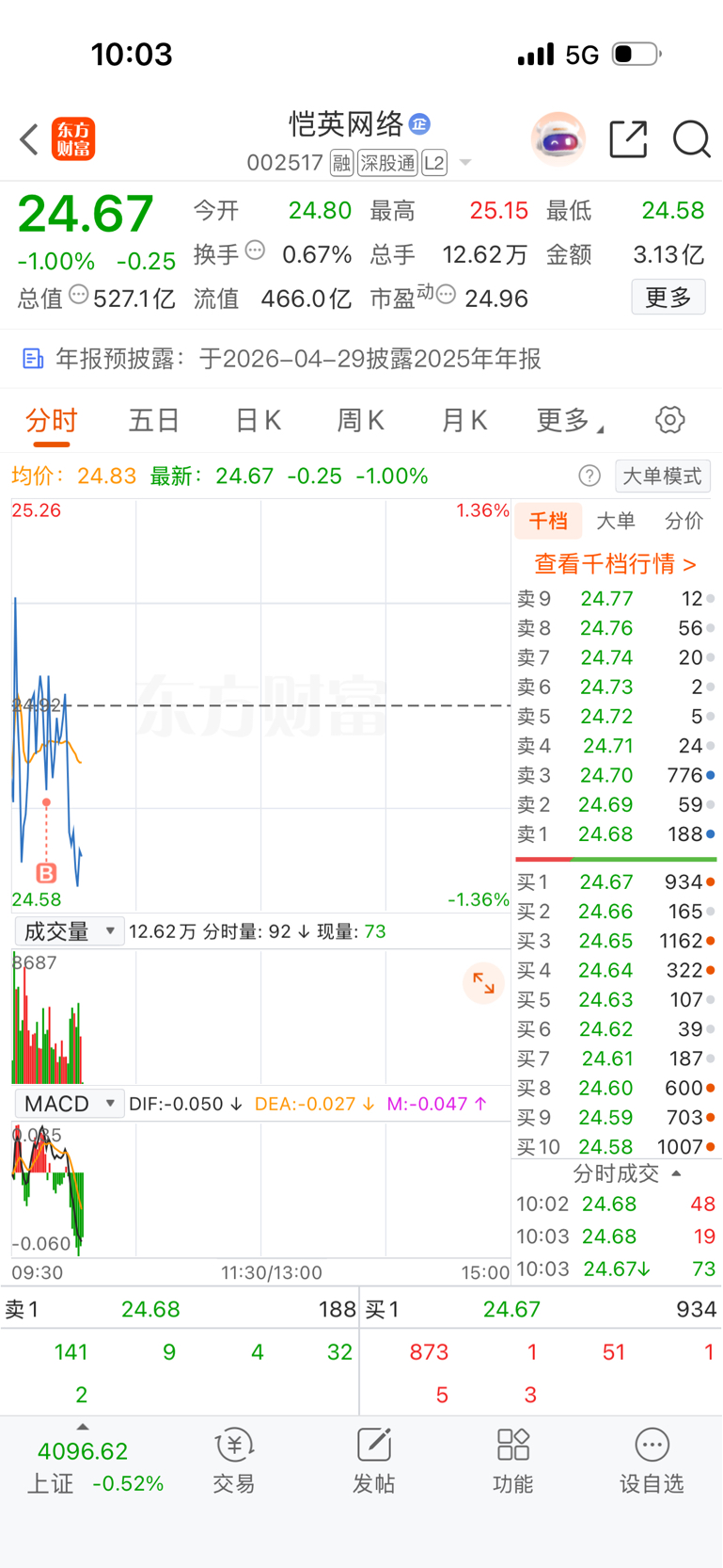 $恺英网络(SZ002517)$ 轻仓试多,应该看涨
