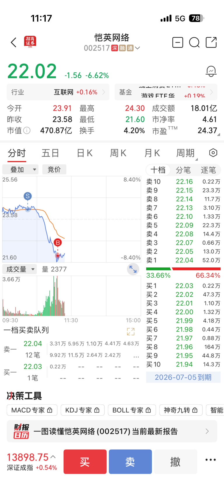$恺英网络(SZ002517)$ 终于被我逮到机会