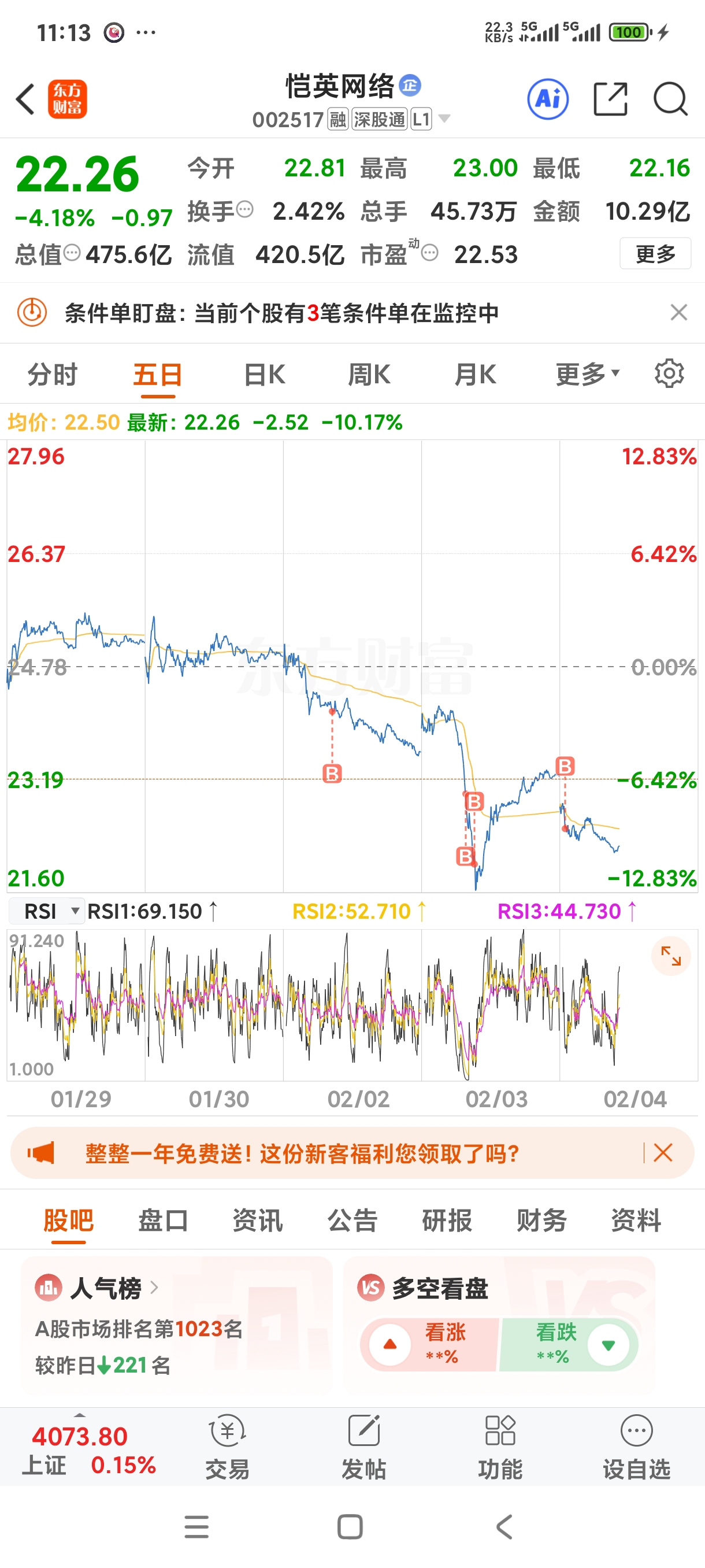 $恺英网络(SZ002517)$ 有高手能给我解答么,告诉我今天要不要补仓,成本23.19,怕补仓补到半山腰,又怕到时候反弹了,本来可以解套的,然后又没来得及补仓。