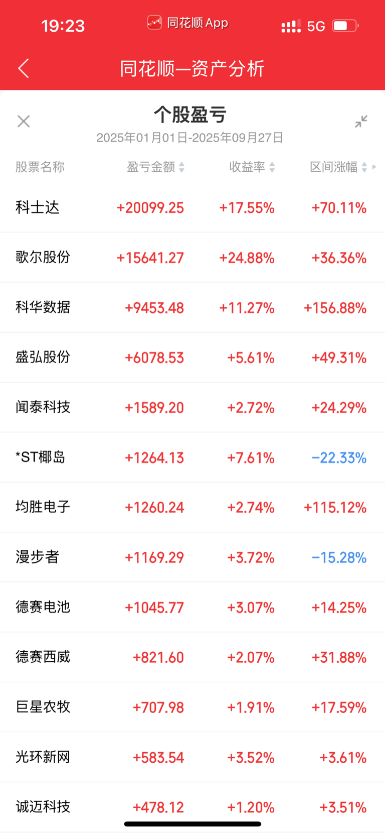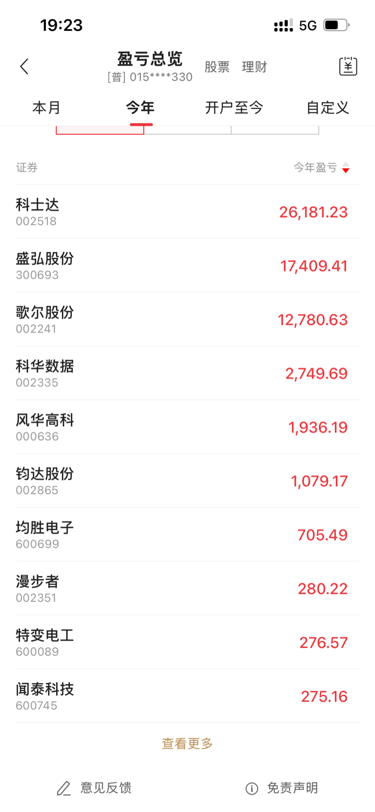 $科士达(SZ002518)$ $盛弘股份(SZ300693)$ 今年两个账户加起来,赚了接近11万,科士达贡献最大,盈利快五万了,相比之下,盛弘真是拉胯,就是不涨,没办法啊