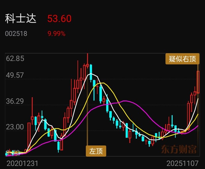 $科士达(SZ002518)$ 月K双顶形态,连续涨停加速赶顶