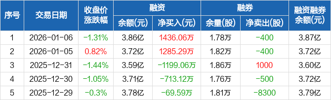 科士达:融资净买入1436.06万元,融资余额3.86亿元(01-06)