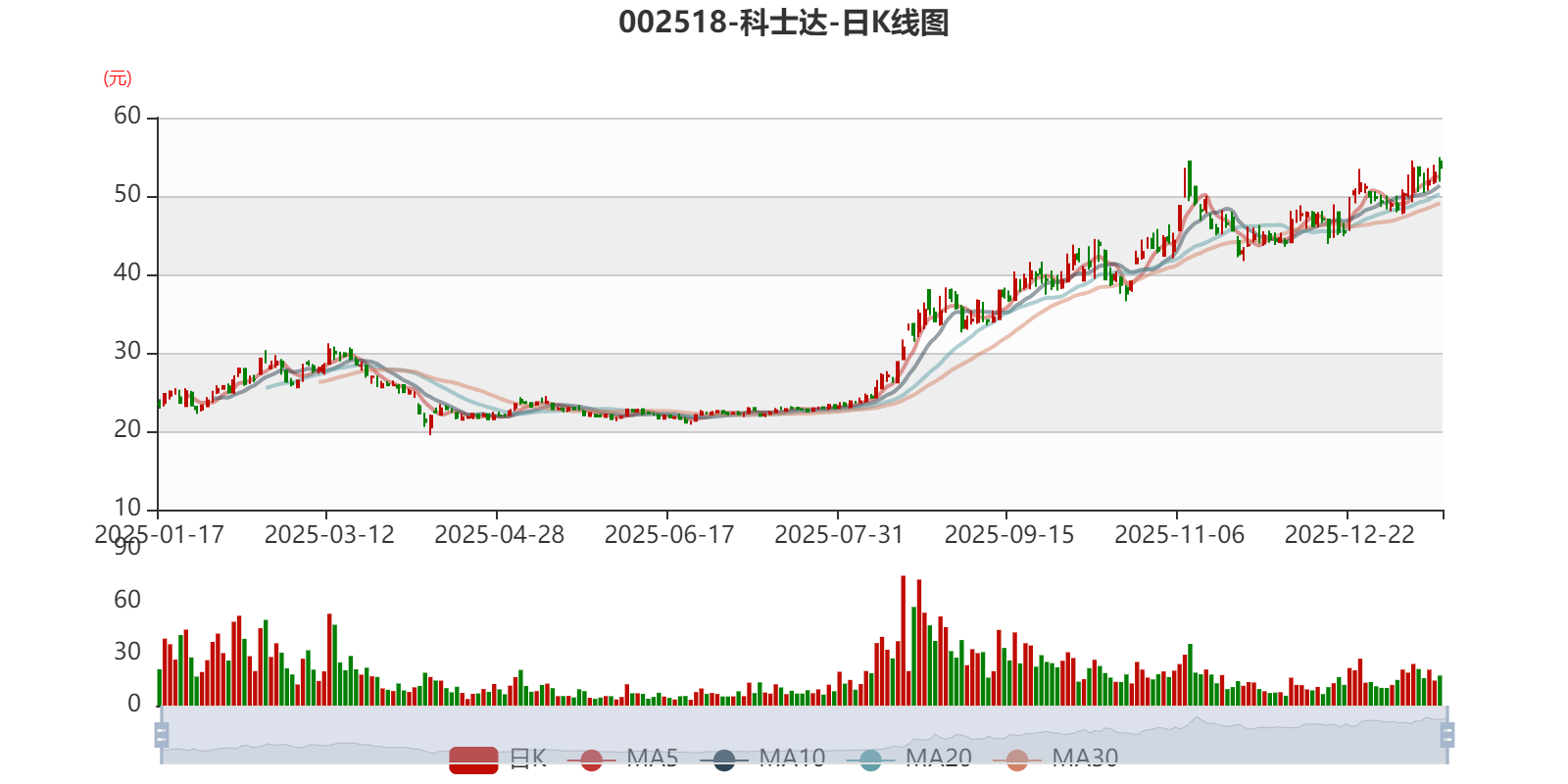 中证智能财讯科士达(002518)1月16日晚间披露2025年度业绩预告,预计2025年归母净利润6亿元至6.6亿元,同比增长52.21%-67.43%;扣非净利润预计5.5亿元至6.2亿元,同比增长59.66%-79.98%;基本每股收益1.03元/股-1.13元/股。以1月16日收盘价计算,科士达目前市盈率(TTM)约为47.28倍-52.01倍,市净率(LF)约6.71倍,市销率(TTM)约6.43倍。