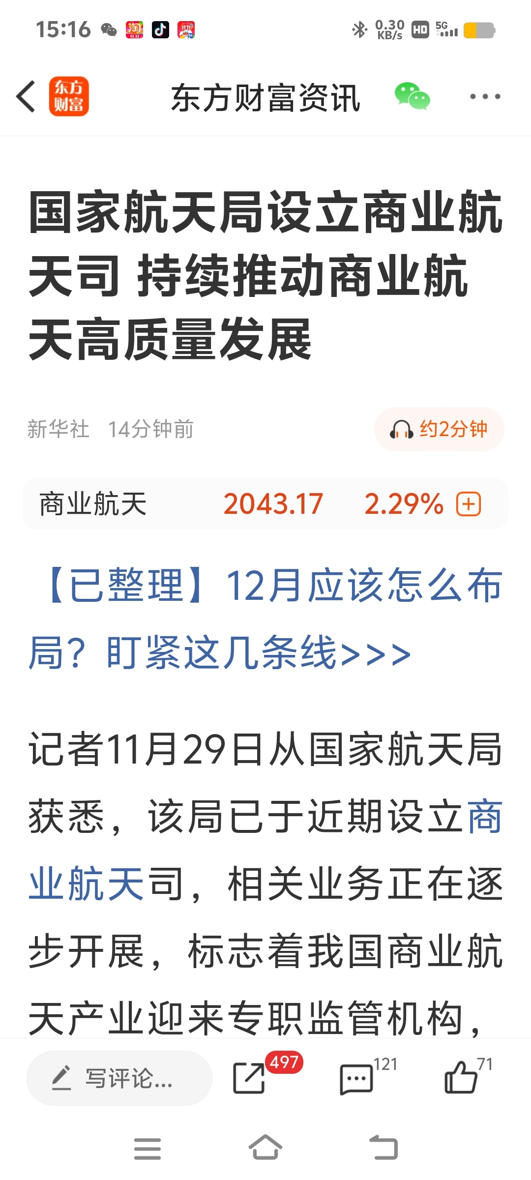 $银河电子(SZ002519)$ 周末情绪发酵厉害,商业航天又来利好啦,大家发财吧