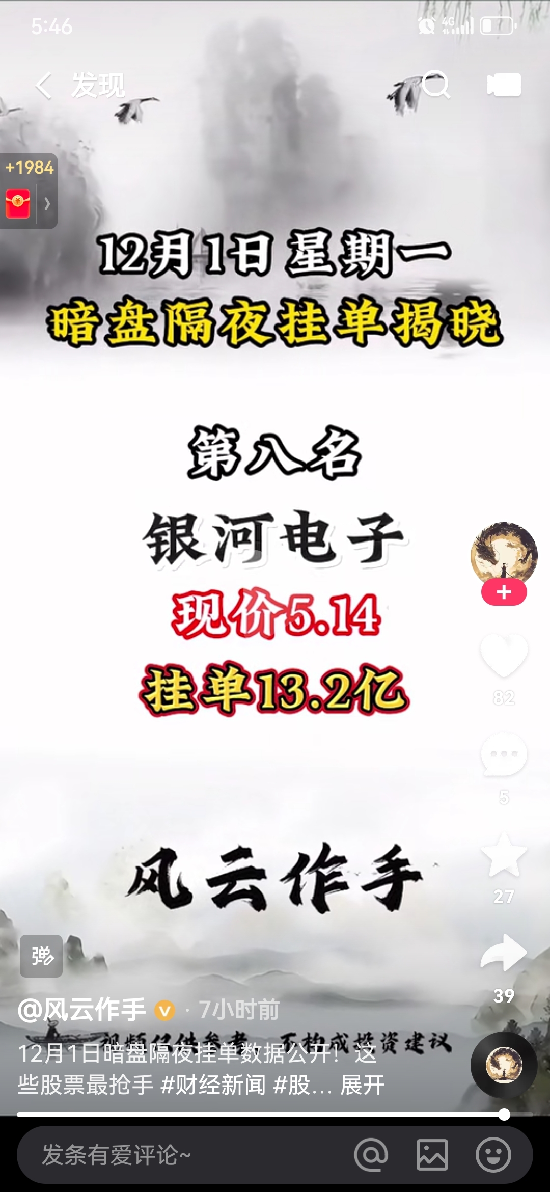 $银河电子(SZ002519)$ 刷快手刷到的,这架势要上五板高度