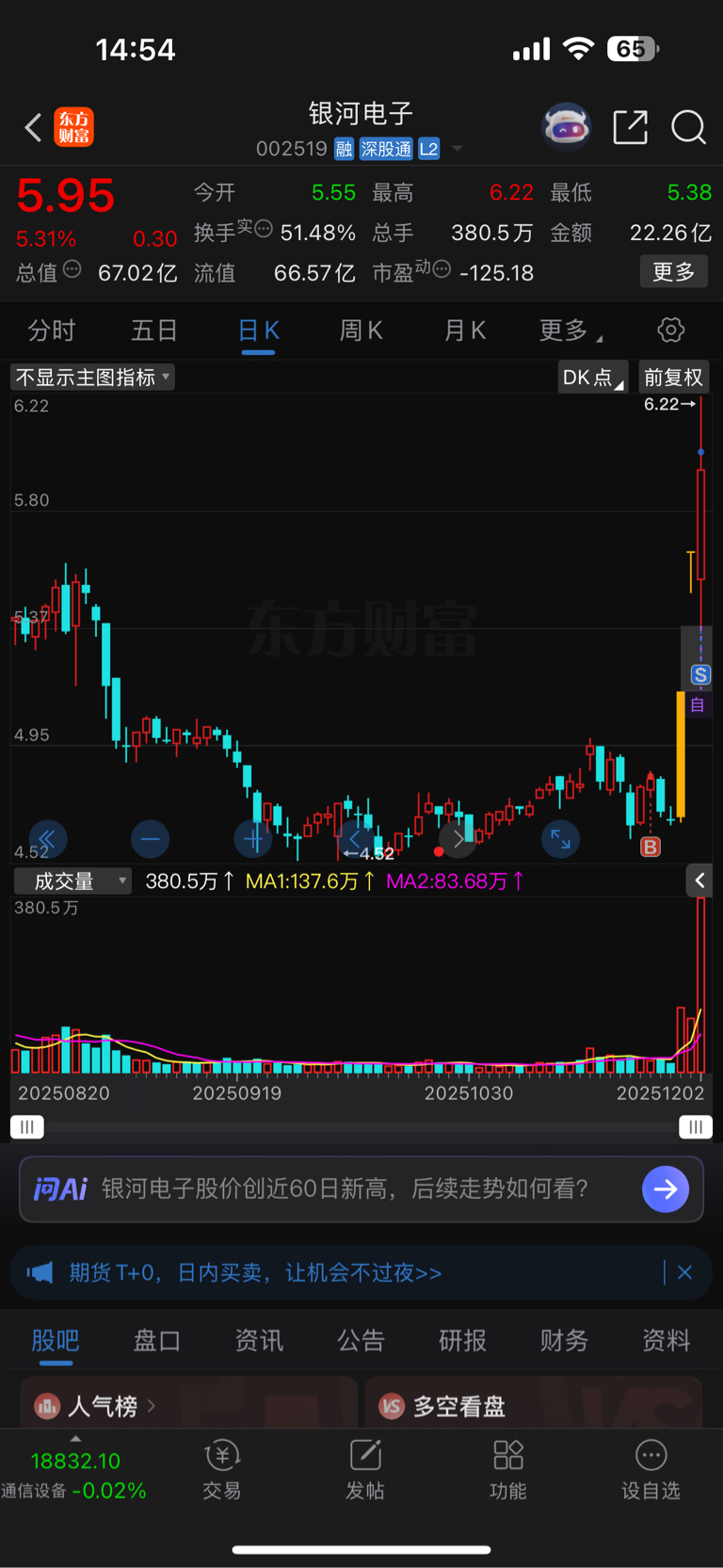 $银河电子(SZ002519)$ 感谢家人接盘